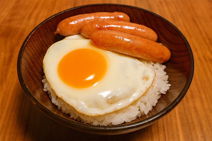 そこで、うちらが育児の中で実際に食べてる時短メシ「目玉焼きウインナー丼」をぴあフェスで出していただくことになりました。